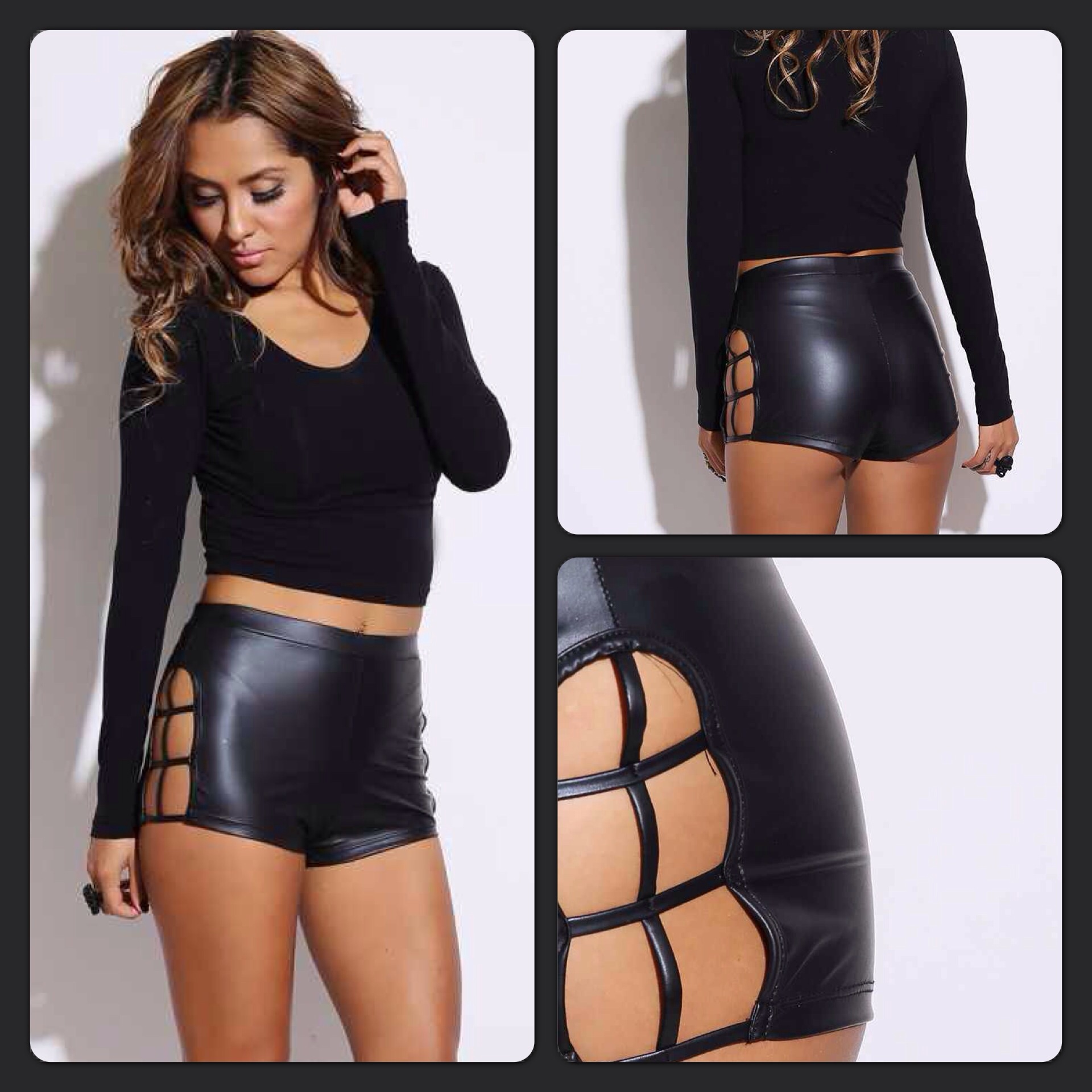 Faux Leather Caged Shorts